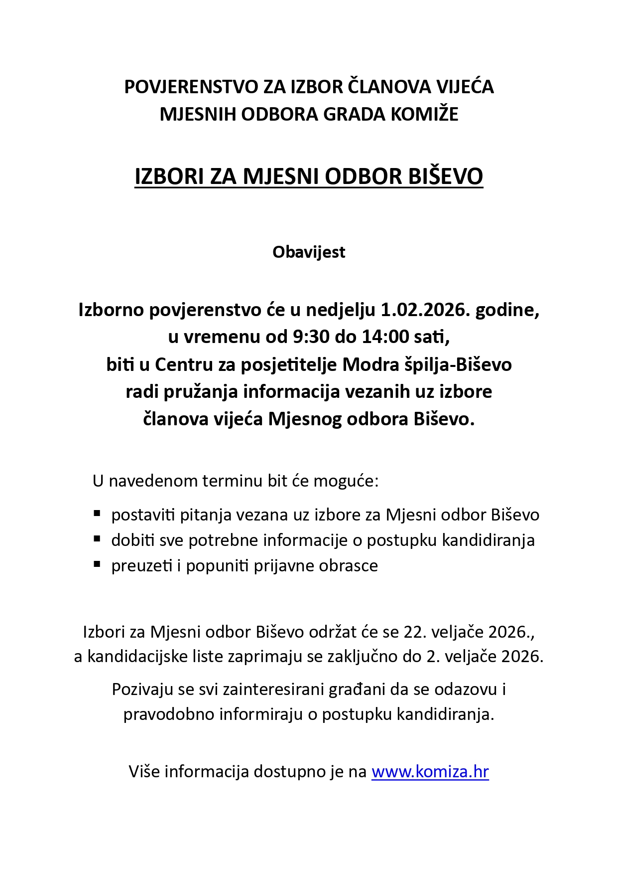 Izbori za Mjesni odbor Biševo – obavijest